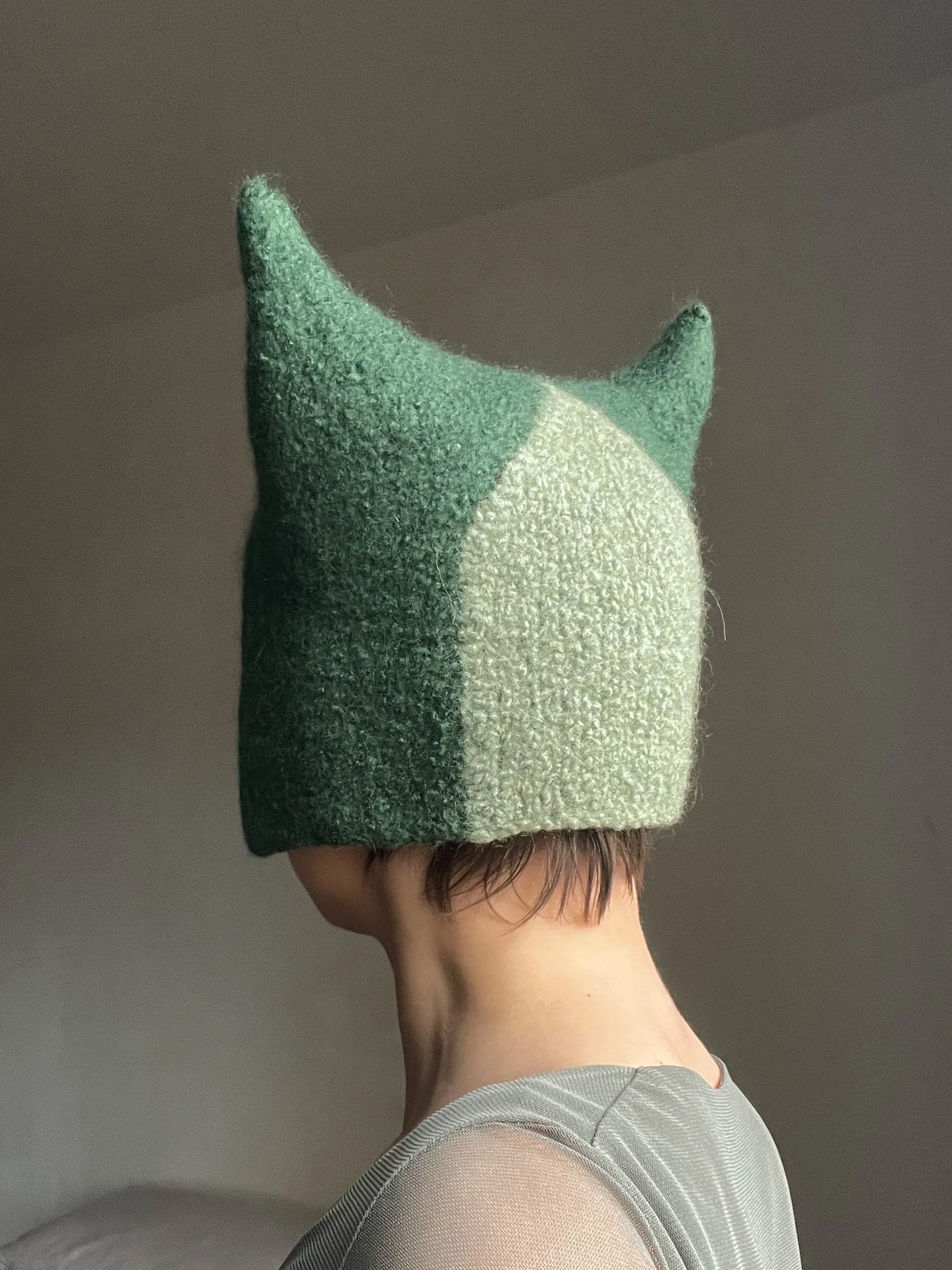 Hand knitted with Drops Snow 100% wool yarn and felted