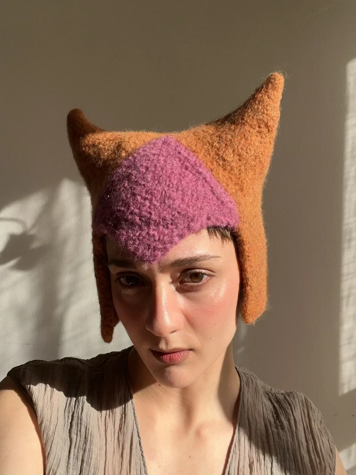 Hand knitted with Drops Snow 100% wool yarn and felted